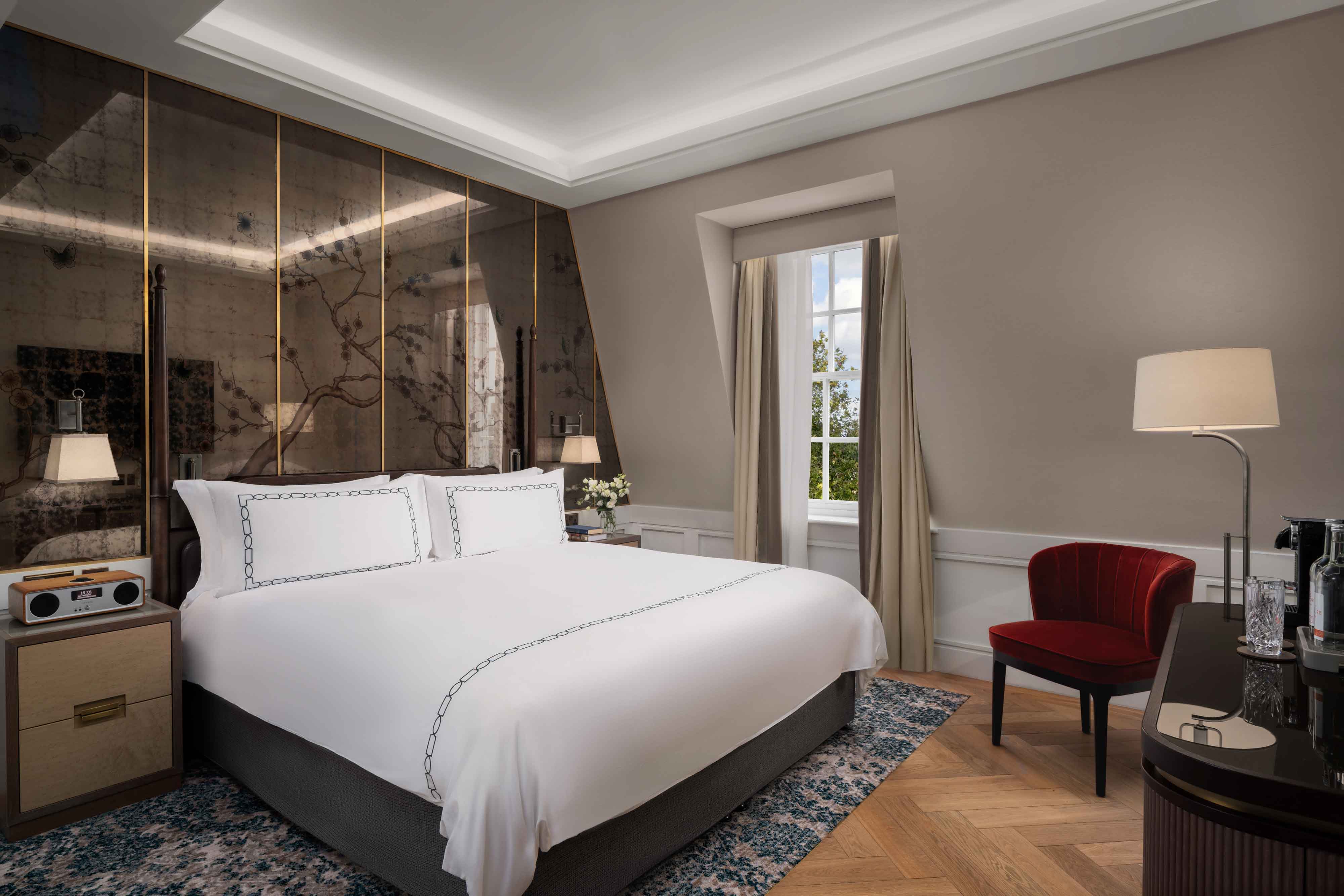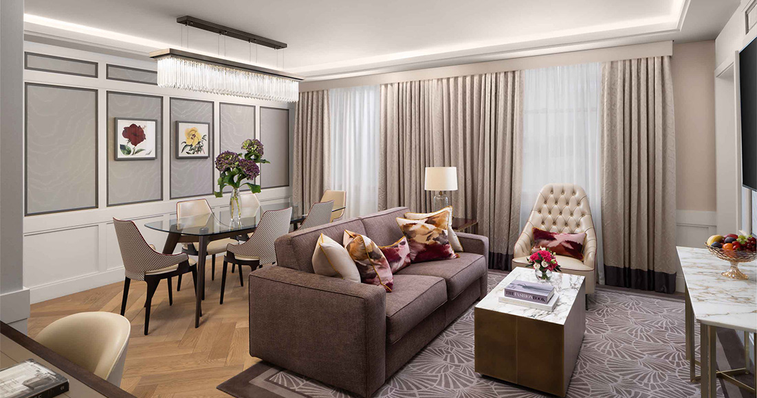 ملاذ أنيق من طابقين بإطلالات رائعة على أفق مدينة لندن. يضم هذا الجناح شرفة مكشوفة خارجية، وغرفة نوم رائعة التصميم ذات مدخل خاص قابل للقفل، ودولاب ملابس منفصل وغرف معيشة وسفرة عصرية ممتازة لاستقبال الضيوف. يمكن توصيل هذا الجناح ذي الطابقين وغرفة النوم الواحدة بجناحنا ذي الطابقين وغرفتي النوم ليصبح بيلتيمور بنتهاوس.